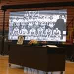 Uz govore sjećanja u pozadini su se na video zidu mogle vidjeti fotografije iz bogate karijere velikog Petra Skansija, od početka 60-ih godina pa do posljednje titule prvaka sa Splitom 2003. godine, a čitav, iako povodom tužan skup oplemenila je klapska pjesma.
