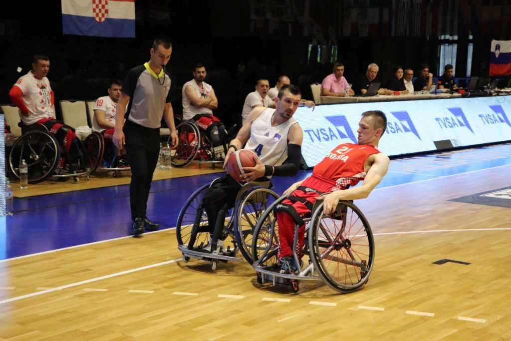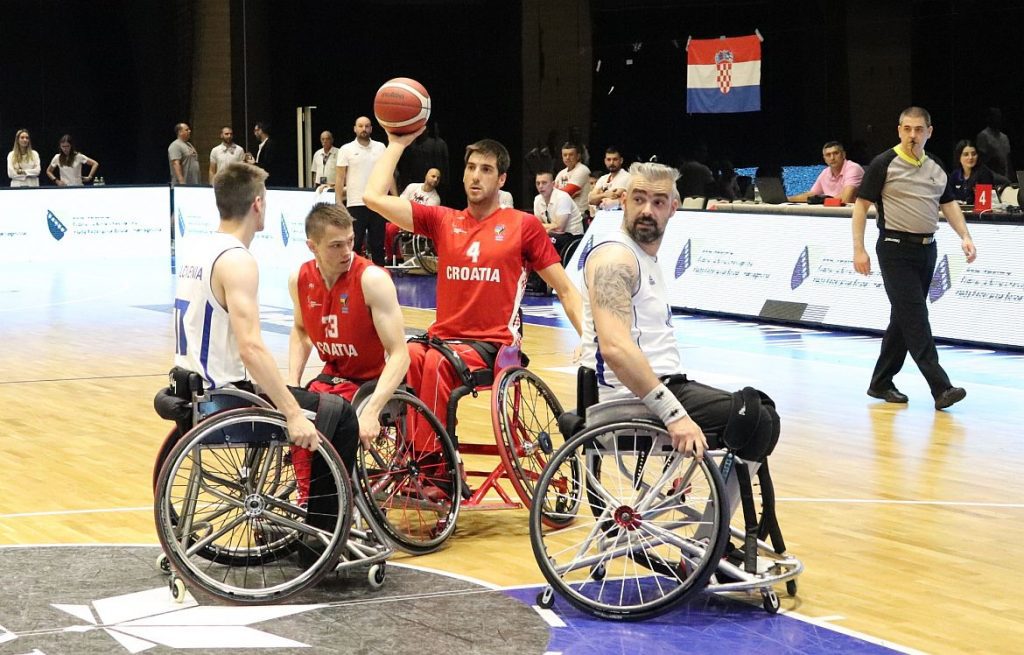 Hrvatska reprezentacija košarkaša u kolicima pobijedila je Sloveniju 53:45 (14:9, 9:18, 17:12, 13:6) u razigravanju za poredak od 5. do 8. na Europskom prvenstvu B i C divizije, domaćin kojega je do 22. lipnja Sarajevo. Hrvatska će za peto mjesto igrati u utorak protiv Belgije od 13.45 sati, Belgija je u razigravanju pobijedila Grčku 66:47.