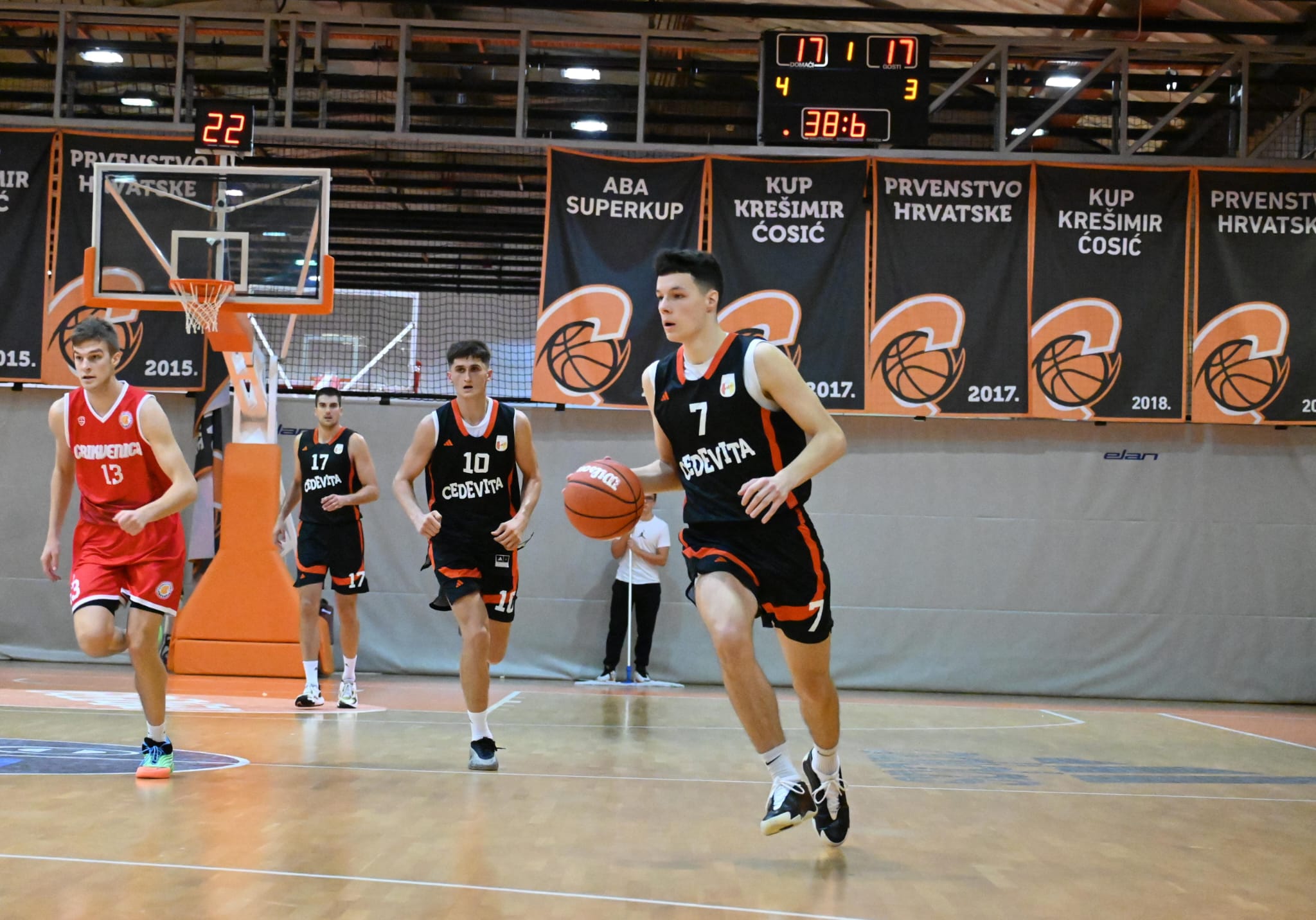 Gosti su bolje otvorili i poveli 12:4 zahvaljujući raspoloženom Došenu, no domaćin se brzo konsolidirao i serijom koševa Krstanovića i Jakića Mladost preokreće i prvu dionicu završava s minimalnim vodstvom 21:19. Druga četvrtina donosi potpunu dominaciju domaćih. Agresivna obrana i visok tempo lansirat će Mladost na +14 (45:31) do poluvremena.