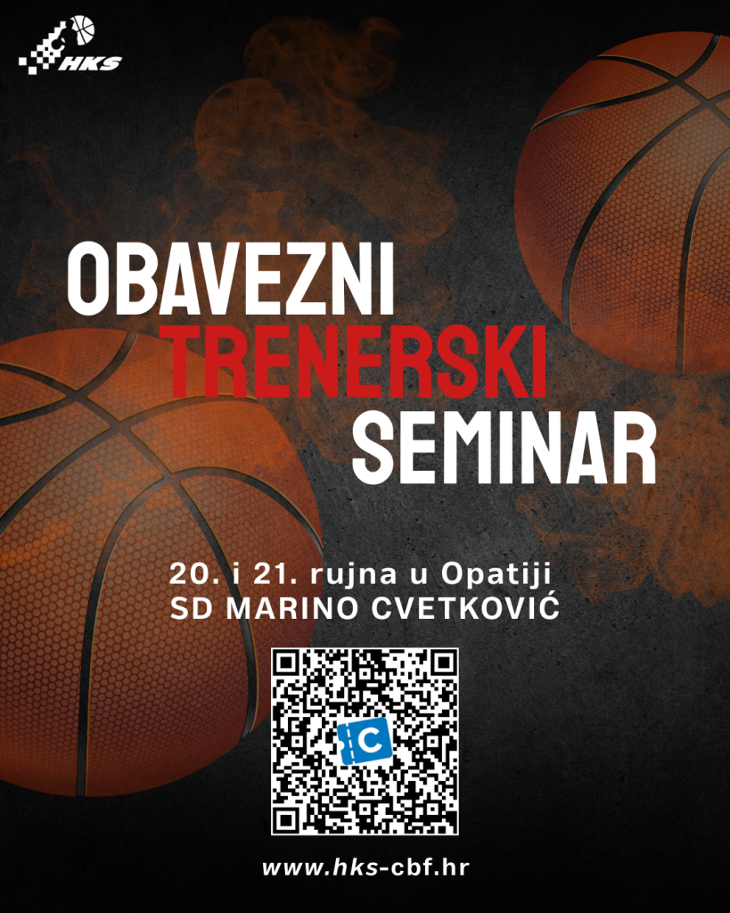 Hrvatski košarkaški savez organizira obavezni godišnji seminar za trenere/ice i pomoćne trenere/ice svih seniorskih liga koji će se održati u subotu i nedjelju, 20. i 21. rujna 2025. u Sportskoj dvorani Marino Cvetković u Opatiji.